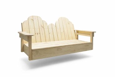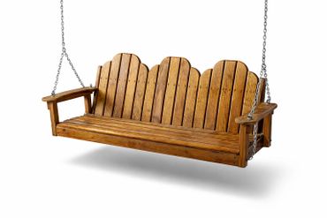 Our Adirondack swing is a classic, rustic outdoor seat that blends relaxed comfort with timeless craftsmanship. Built from solid pine or cedar, it features the signature Adirondack design—wide, flat armrests, a gently sloped seat, and a tall, angled back with broad vertical slats that cradle the body in a laid-back posture. (available in two or three seat)